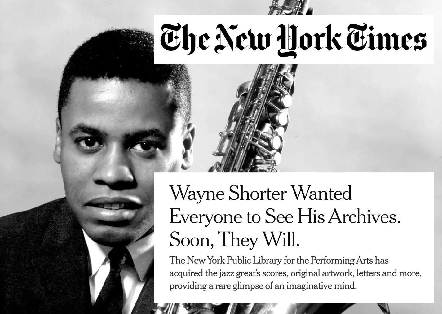 Sep 4, 2025 — The Library for the Performing Arts acquires the archive of jazz legend, Wayne Shorter. For this article, nearly a year in the making, I worked closely with music writer Hank Shteamer to get behind the scenes access to the archive and the people that made it happen